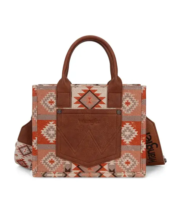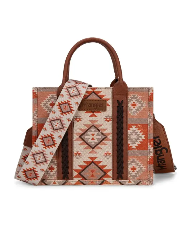 Wrangler Aztec Pattern Dual Sided Print -Tote/Crossbody -Tan